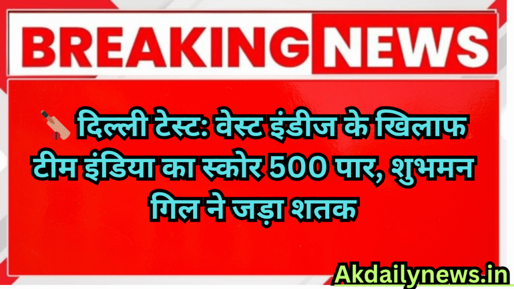 दिल्ली टेस्ट: वेस्ट इंडीज के खिलाफ टीम इंडिया का स्कोर 500+ पार, शुभमन गिल ने शतक | IND vs WI 2025 ‣ Akdailynews