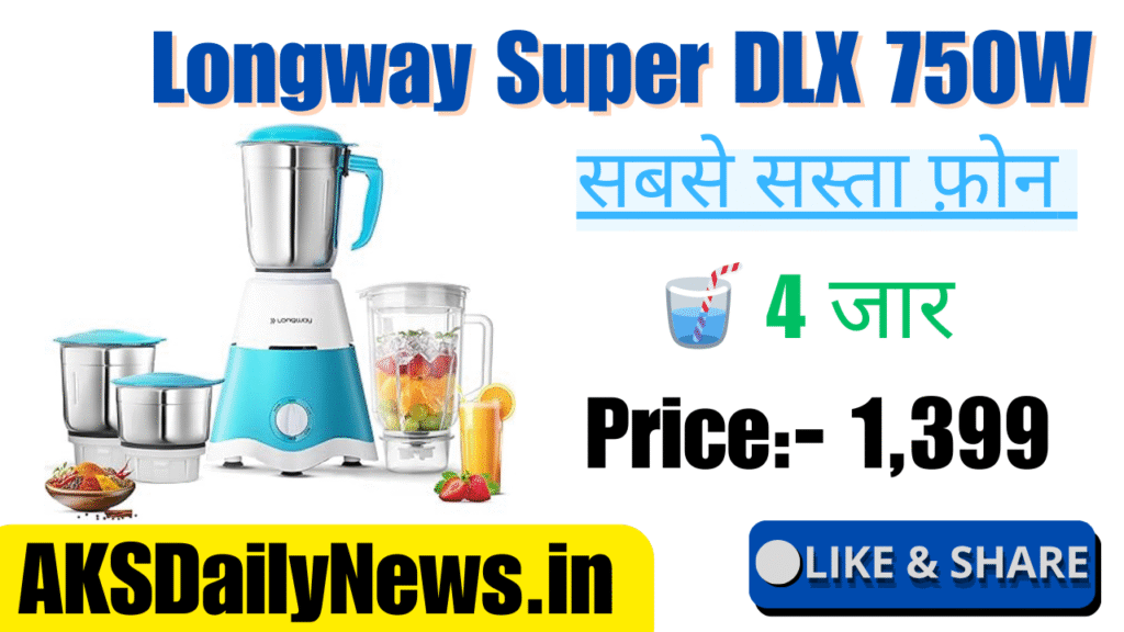 Longway Super DLX 750W Juicer Mixer Grinder (4 जार) – फीचर्स, कीमत, वारंटी और पूरी जानकारी हिंदी में ‣ Akdailynews