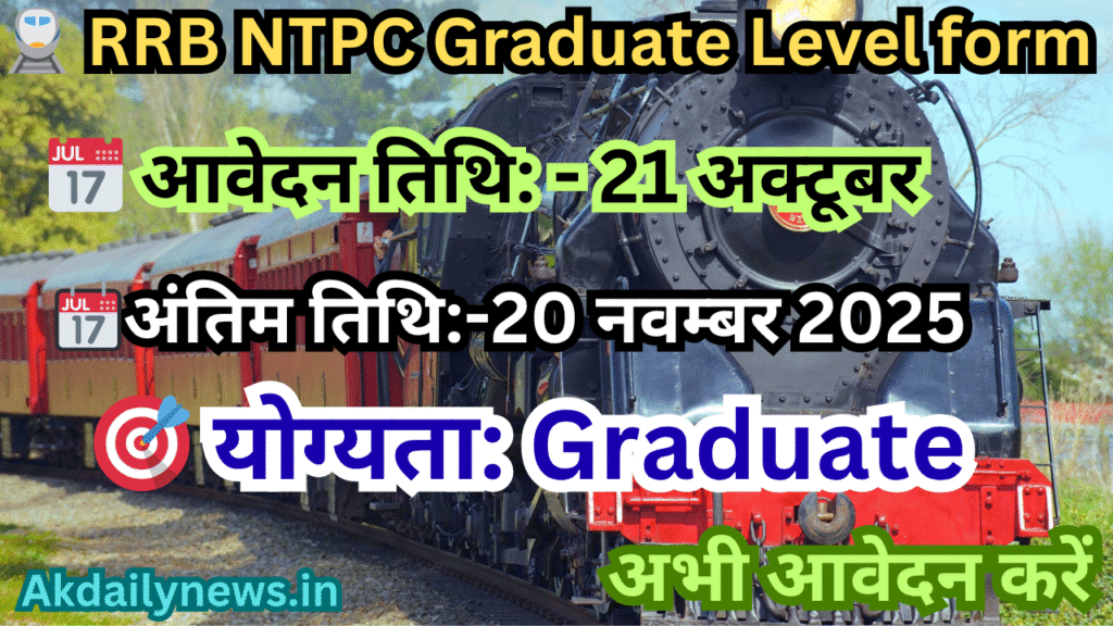 RRB NTPC Graduate Level Recruitment 2025 की अधिसूचना जारी कर दी गई है और आवेदन प्रक्रिया 21 अक्टूबर 2025 से शुरू होगी। यदि आप रेलवे में नौकरी पाना चाहते हैं तो यह आपके लिए सुनहरा मौका है।